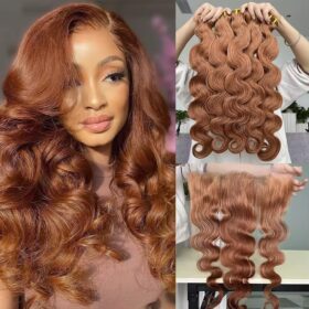 Brazilian #350 ginger orange wavy/straight frontal and closure