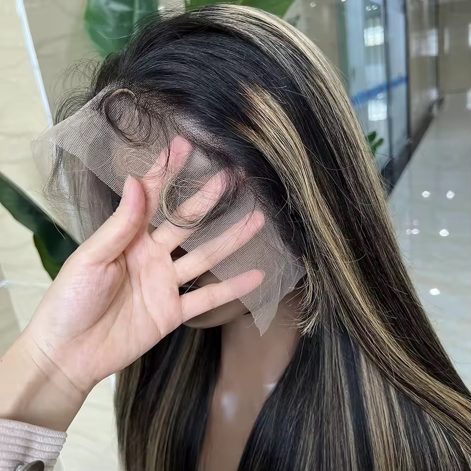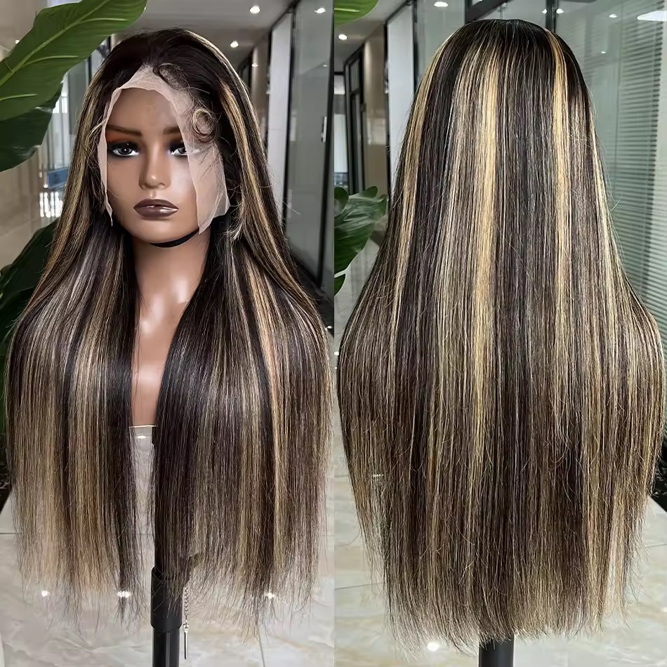 Color 1b 27 highlights straight HD lace frontal human hair wig